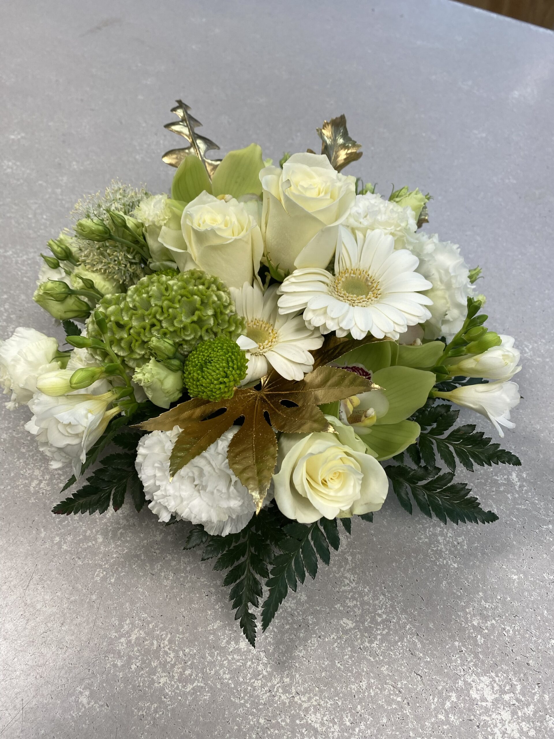 *Composé de fleurs fraîches, il est possible que votre composition soit quelque peu différent du visuel présenté, qui est à titre indicatif.*